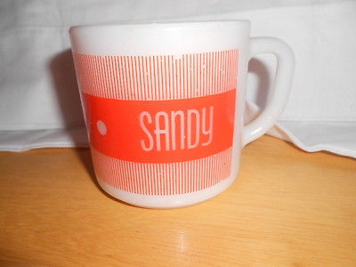 Vintage Federal Milk Glass Name Mug Sandy coffee cup Striped 3 inches tall