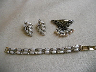 Title (ebay affiliate link): Vintage White Pearl Milk Glass Clear Rhinestone Jewelry Lot 3pcs LERU Bracelet