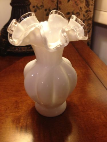 Title (ebay affiliate link): Vintage Fenton Crimped Silver Crest White Milk Glass Ruffled 6" Vase