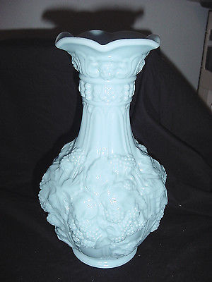 VINTAGE IMPERIAL BLUE MILK GLASS LOGANBERRY VASE 10-1/8" TALL EC GRAPE RARE EC