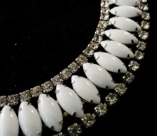 Title (ebay affiliate link): Vintage HIGH QUALITY Bracelet Rhinestone Milk Glass Silver Tone Elegant! 1075
