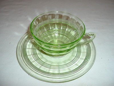 Title (ebay affiliate link): Hocking Green Depression Glass Block Optic Cup and Saucer