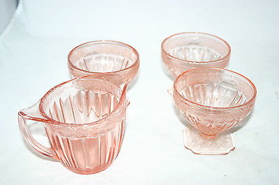 JEANNETTE GLASS COMPANY PINK DEPRESSION GLASS ADAM SHERBETS & CREAMER NO RESERVE