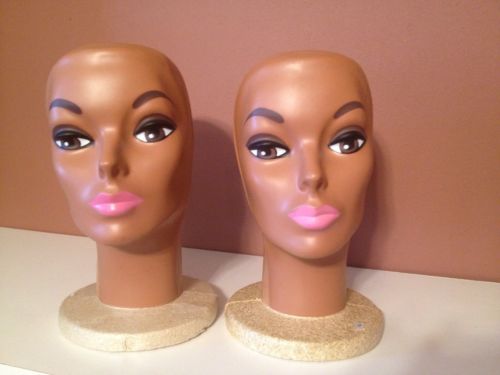 Title (ebay affiliate link): 2 VINTAGE WOMAN MANNEQUIN HEADS -PLASTIC/STYROFOAM TAN COLOR FOR WIGS, HATS, ECT