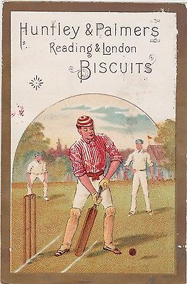 rare victorian trade card 1880's huntley palmers biscuits sports cricket