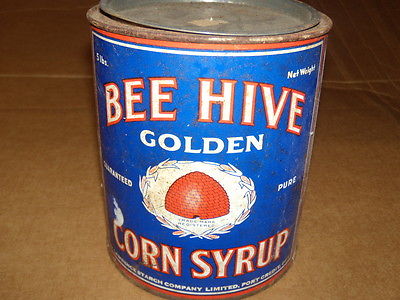 Title (ebay affiliate link): VINTAGE BEE HIVE CORN SYRUP TIN WITH LID, LARGE SIZE, PORT CREDIT CANADA