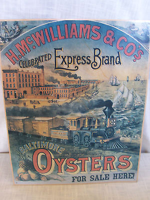Vintage HMcWilliams & Co Tin Sign Baltimore Oysters For Sale Advertising 16"x13"