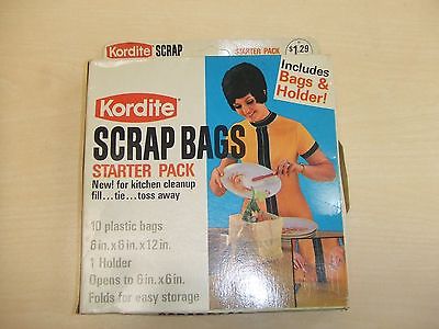 Title (ebay affiliate link): vintage 70's NOS sealed Kordite / Hefty plastic scrap bags & holder starter pack