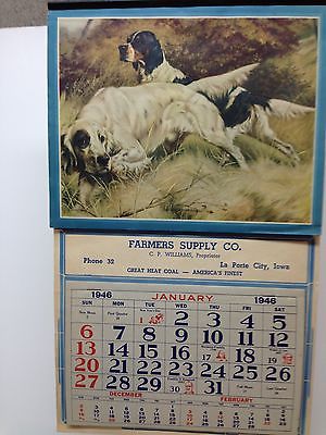 1946 La Porte City, Ia. Calendar with Hunting Dogs Art