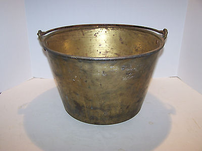 H W Hayden SPUN BRASS BUCKET - Pat'd 1851; "Rat Tail" Handle; LARGE 13-3/8" Diam