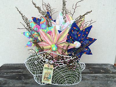 Prim Easter Bunny Rabbit Basket Fabric Flowers Battery Candle Table Centerpiece
