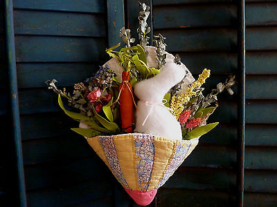 Primitive Folk Art Easter Bunny Rabbit Antique Quilt Door Greeter Decoration JAN
