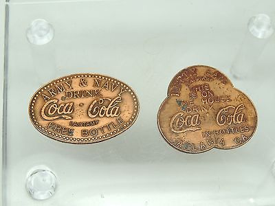 Pair Vintage Copper COCA COLA Bottling Tokens Army & Navy