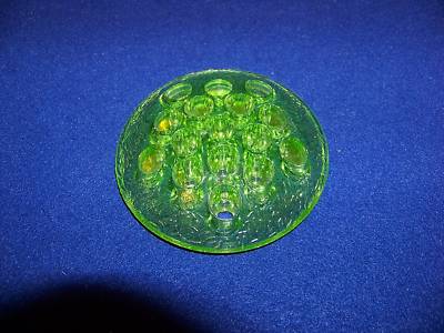 GREEN DEPRESSION GLASS FLOWER FROG, 16 HOLES