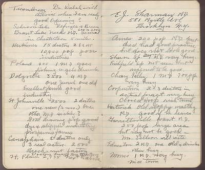 20th Century Handwritten Journal Dr. Sharman Tea Shop Brooklyn NY Born in India