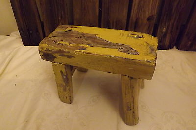 Primitive-small Weathered Wood Step Stool-Bench Worn Paint Yellow Rustic chippy
