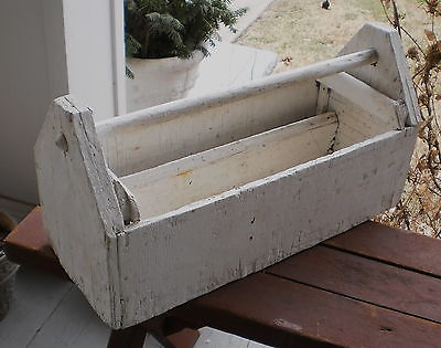 Vintage Large Rustic Primitive Wood Carpenter Tool Box Tool Caddy Handmade