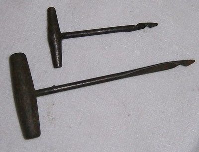 Title (ebay affiliate link): 2- VINTAGE ANTIQUE GIMLET AUGER SCREW TAP STARTER HAND TOOL WOOD & METAL HANDLE