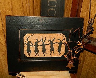 Title (ebay affiliate link): Primitive Black Distressed Wood Frame Dancing Rabbits Bunnies Spring Easter