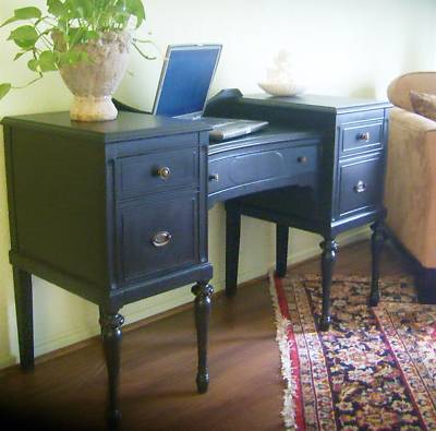 Title (ebay affiliate link): Vintage Black Cottage Chic Double Pedestal Vanity, Desk