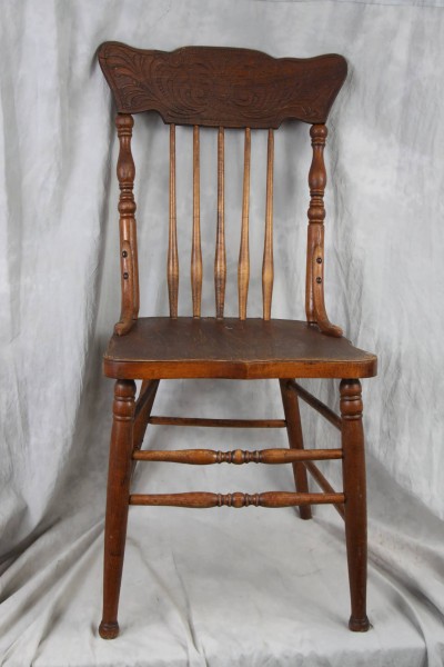 L179 ANTIQUE OAK PRESSBACK CHAIR