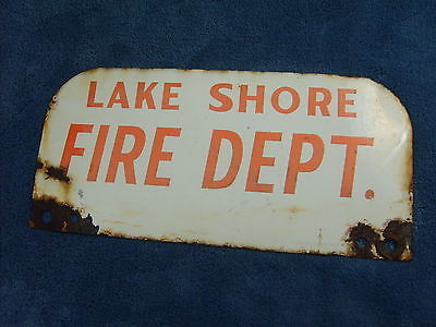VINTAGE LAKE SHORE FIRE DEPT. METAL PORCELAIN SIGN