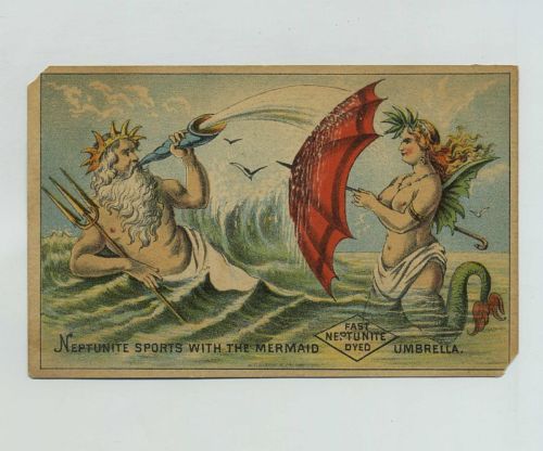 Title (ebay affiliate link): 1800's Umbrella Advertising Trade Card Fantasy Neptune Nude Mermaid vg4933