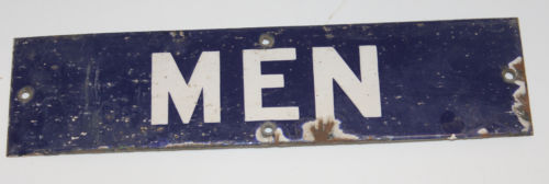 Title (ebay affiliate link): Orignal Old Enamel Sign MEN Mens Room Deep Blue/Purple with White Lettering 3x12