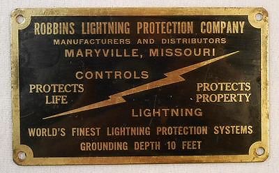 Title (ebay affiliate link): Vintage Brass Manufacturers ID Tag Robbins Lightning Rod Protection Maryville MO
