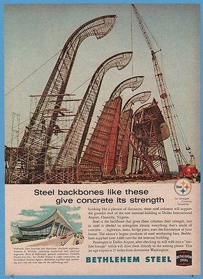 Title (ebay affiliate link): 1962 Eero Saarinen Dulles Airport Construction Crane Columns Bethlehem Steel Ad