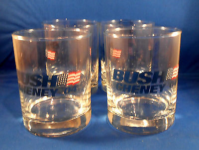 2004 Presidential Souvenir Old Fashioned Glasses George W Bush Dick Cheney 4 qty