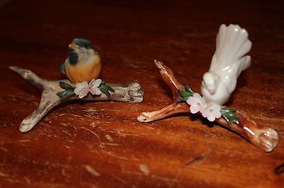 Capodimonte Blue Sparrow on branch and Dove on branch