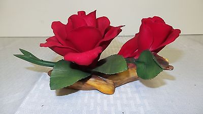 ITALY MADE NAPOLEON CAPODIMONTE RED ROSE FLOWER SCULPTURE