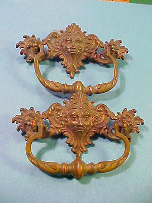 SET OF 2 OLD VINTAGE ANTIQUE OLD MAN OF THE NORTH SOLID CAST BRASS DRAWER PULLS