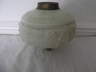 ANTIQUE /VICTORIAN PALE GREEN EMBOSSED PATTERN GLASS OIL LAMP FONT