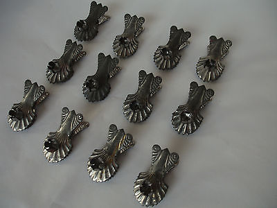 (12) ORIG. RARE LG. VICTORIAN SHELL SHAPED STEEL CANDLE STICK TREE CLIPS-NO RES.