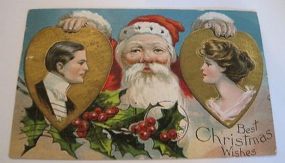 1910 Christmas Valentine Postcard with Santa Claus as Cupid