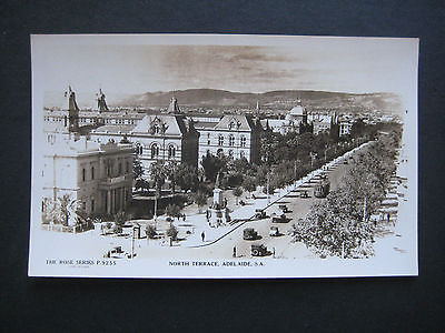 1930s NORTH TERRACE, ADELAIDE SOUTH AUSTRALIA POSTCARD_ROSE SERIES_TRAM & CARS