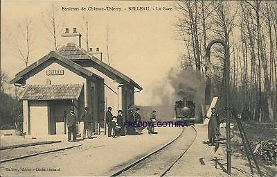 French 02 Belleau . la gare . reprint old photo postcard. G002