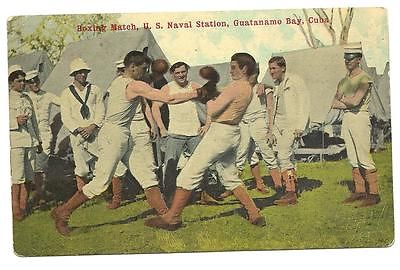 VINTAGE MILITARY POSTCARD PC WWI GUANTANAMO BAY CUBA BOXERS US NAVAL STA 1915
