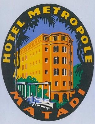 METROPOLE Hotel old luggage label MATADI Africa dECO CONGO