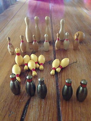 Lot of Vintage Miniature Bowling Pins Wood Plastic Metal