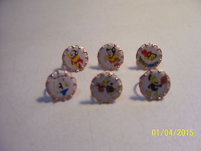 Old Vintage 70's Era New Store Stock of 6 Different Kids Cartoon Character Rings