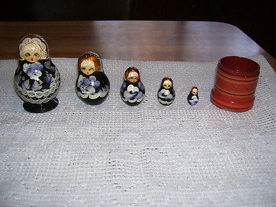 Antique Set of 5 Wood Nesting Toy Dolls Figurines