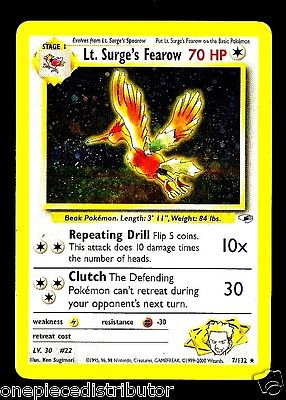 Title (ebay affiliate link): 1PD - Lt. Surge's Fearow #22 7/132 Gym Challenge/Hero Holo Pokemon Trading Card