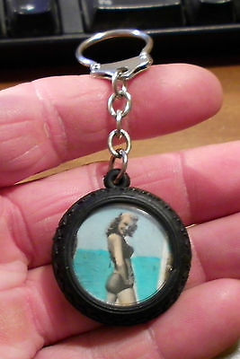 Title (ebay affiliate link): Vintage 1950s 1960s Pinup Girl Tire Keychain Hot Rod Swimsuit Car Culture