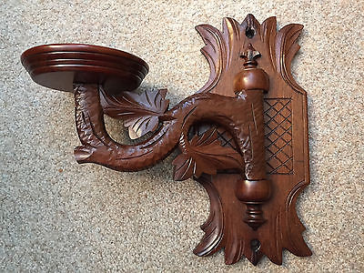 Antique Victorian Carved Wooden Walnut Wall-Mount Lamp Bracket/Shelf