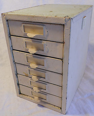 Title (ebay affiliate link): Vintage Industrial Factory Salvage Metal w/ 6 Label Pull Divided Drawers Cabinet