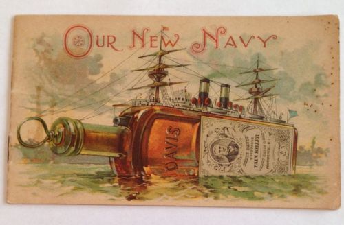 19th c. Trade Booklet OUR NEW NAVY Davis Pain Killer Navy Ships Bottle Corkscrew