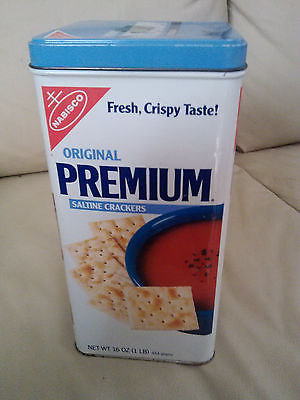 Title (ebay affiliate link): Vintage 1987 Nabisco Premium Saltine Crackers Kitchen Tin Canister Can Box